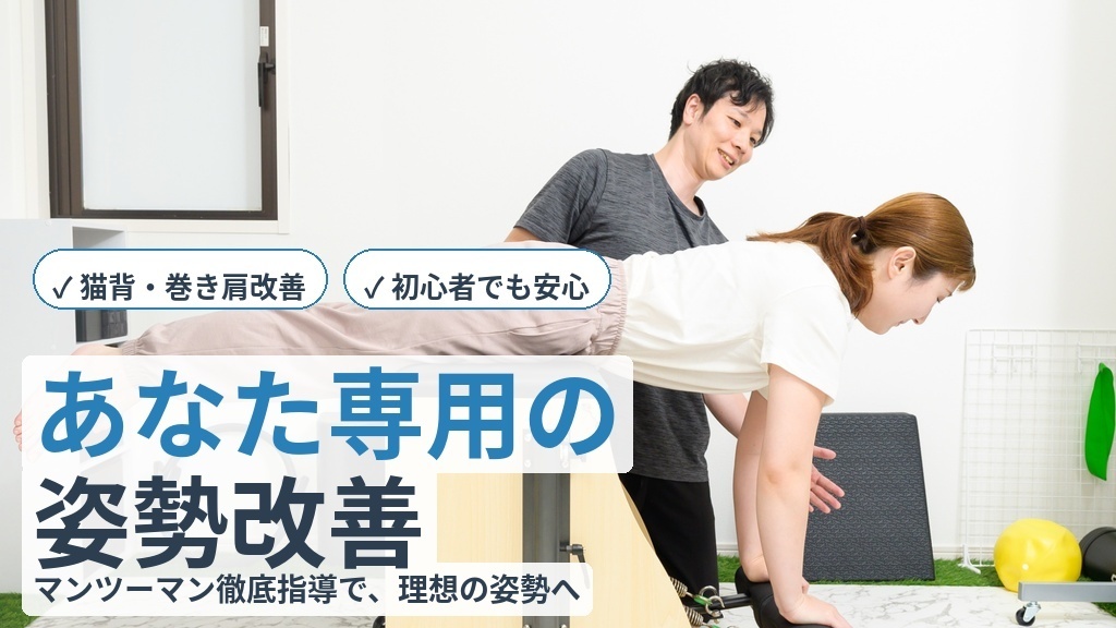 当店では、姿勢改善を目的としたパーソナルトレーニングとピラティスをご提供しています。