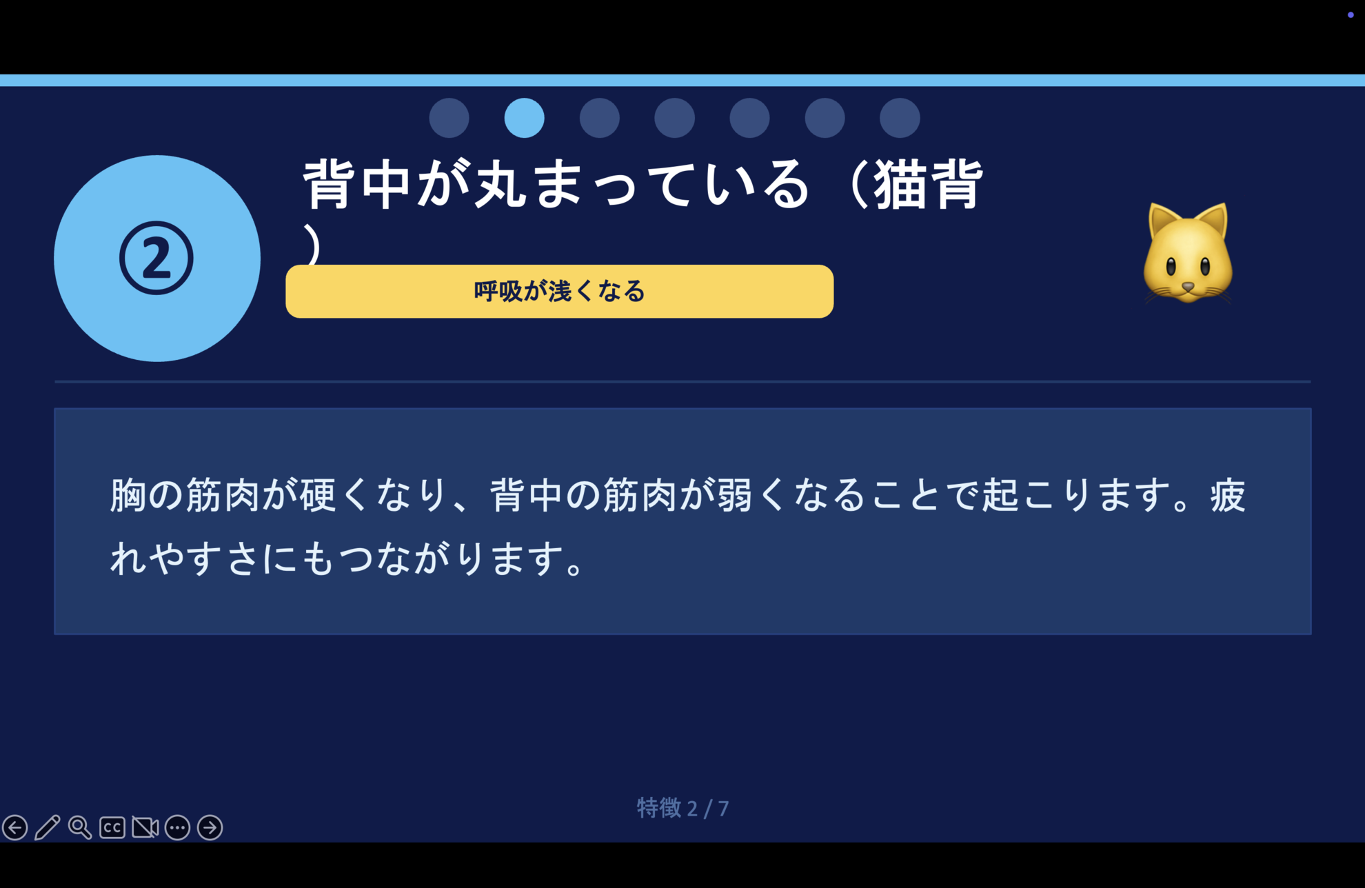 呼吸が浅くなり、疲れやすさにもつながります。