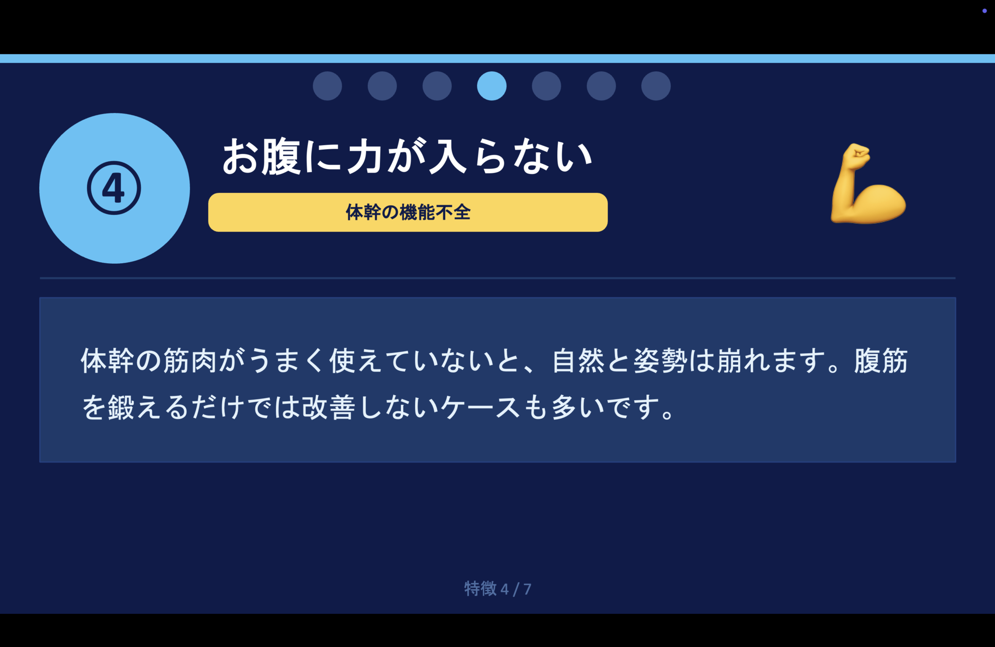 腹筋を鍛えるだけでは改善しないケースも多いです。